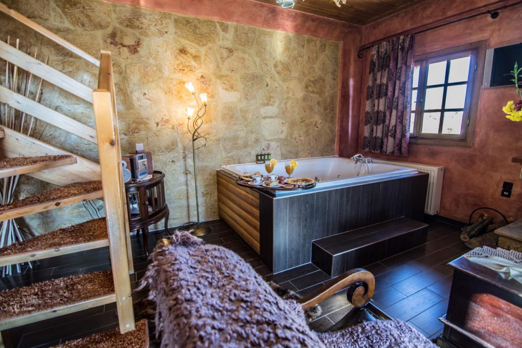 Με θέα προς τον Κορινθιακό Κόλπο και το Όρος της Ζήρειας, η Suite, εμβαδού 70 τμ., θα σας προσφέρει μία αξέχαστη διαμονή. Η πέτρα, το ξύλο και η καλόγουστη επίπλωση συνθέτουν ένα σκηνικό που θα σας προϊδεάσει να απολαύσετε ένα χαλαρωτικό υδρομασάζ με χρωματοθεραπεία- απέναντι από το τζάκι, το οποίο θα σας προσφέρει στιγμές χαλάρωσης και ξενοιασιάς. Ενώ στο λουτρό θα σας αποδείξουμε με την καμπίνα 2 ατόμων τα μπουρνούζια και τις παντόφλες από αγνό βαμβάκι, το σεσουάρ και τα είδη προσωπικής φροντίδας την διάθεσή μας για μια φιλοξενία αξέχαστη. Στο απολαυστικό υπνοδωμάτιο, στο οποίο θα οδηγηθείτε από την εσωτερική σκάλα, θα μπορέσετε να αισθανθείτε την ηρεμία μαζί μα τα πουπουλένια παπλώματα και τα άφθονα μαξιλάρια. Η TV μαζί με το DVD-CD player θα σας σώσει μία επιπλέον επιλογή εναλλακτικής ψυχαγωγίας.